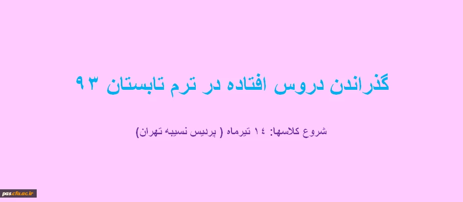 شروع کلاسهای ترم تابستان ( در پردیس نسیبه تهران) 14 تیرماه