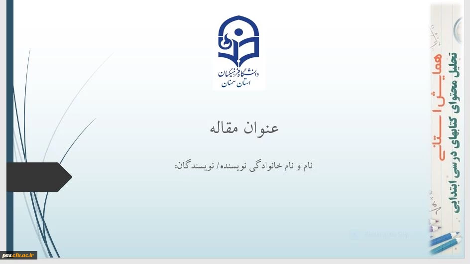 قالب فایل پاورپوینت جهت ارائه مقالات شفاهی منتخب در همایش تحلیل محتوای کتابهای درسی ابتدایی 3
