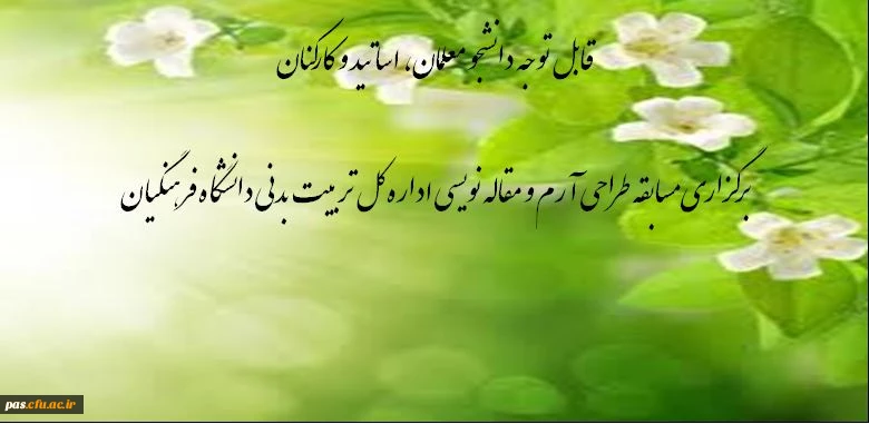 امتیاز دهید : اداره کل تربیت بدنی دانشگاه فرهنگیان برگزارمی کند: مسابقه طراحی آرم و مقاله نویسی یکشنبه 28 دی 1393 ساعت 9:36